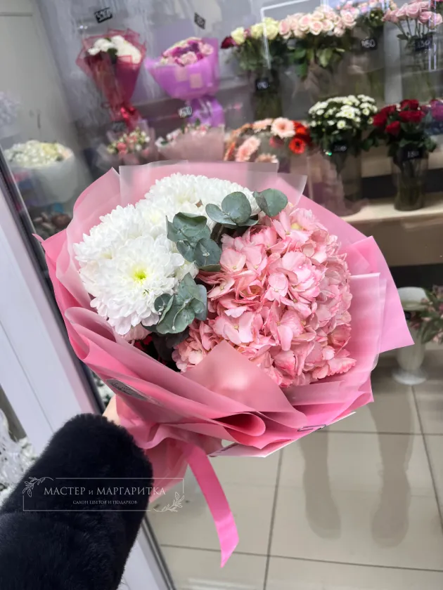 - Гортензия (цветовую гамму можно согласовать с флористом) 1 шт.