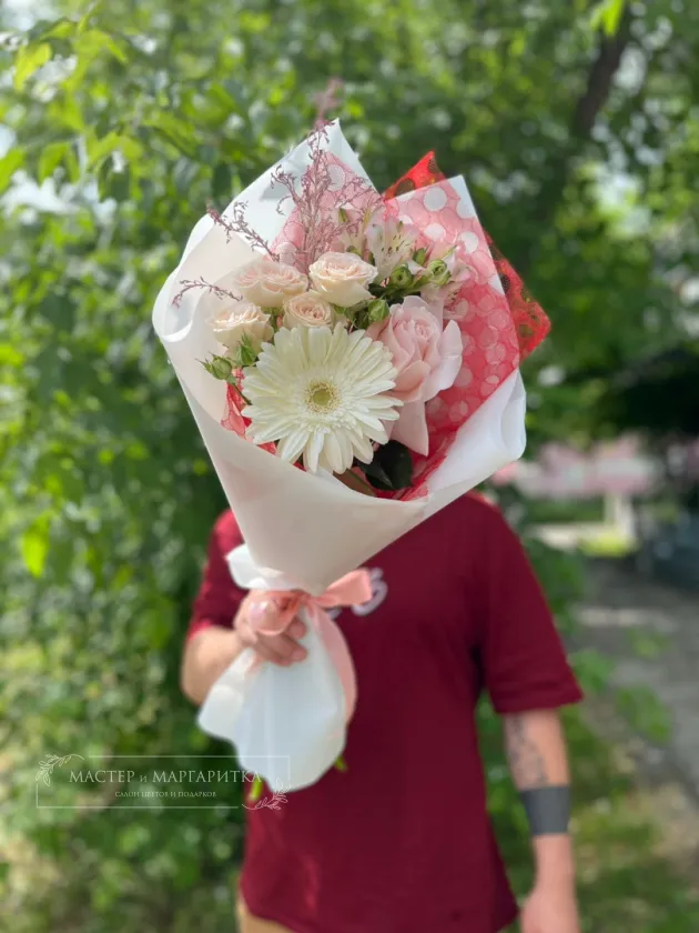 Каждый букет уникален, поэтому возможно отличие по наполнению, цветовой гамме и упаковке от представленного на фото.