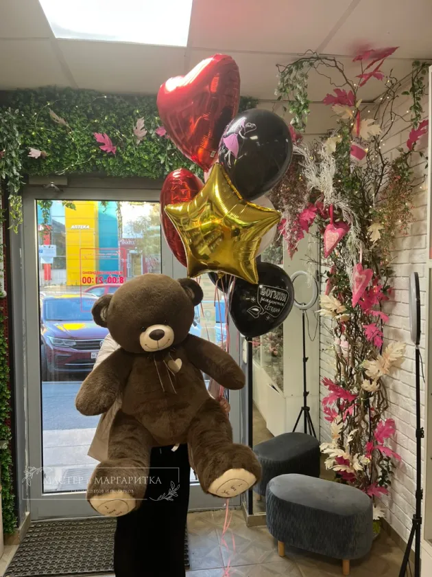 Огромный мишка и воздушные шары — сочетание, которое не оставит равнодушным!